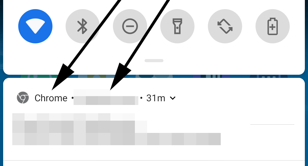 通常,通知将显示类似于Chrome ● myexamplesite.com ● now的内容。