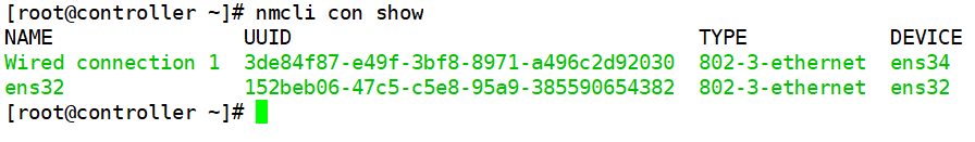 解决办法: 执行# nmcli con show命令,查看新的网卡UUID编号,复制下来。