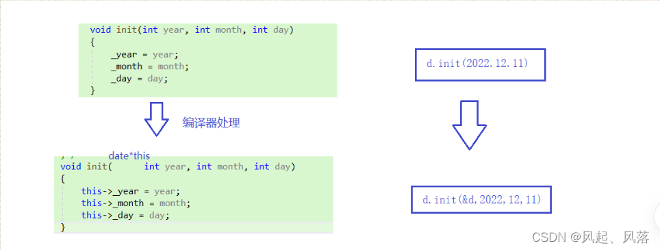 同样的init成员函数也包含隐藏的this指针
