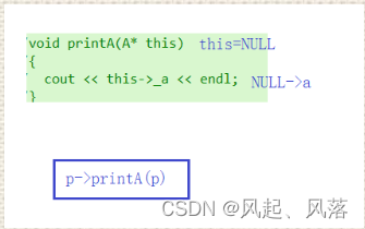 p为NULL,this指针作为p的形参,所以this==NULL,NULL->a程序就会崩溃