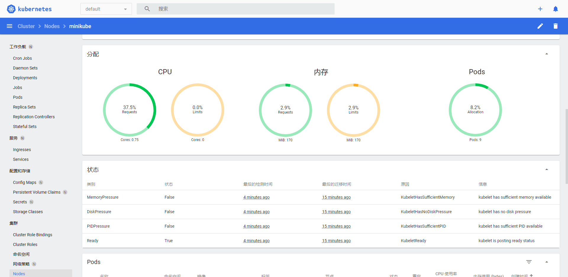 alias kubectl="minikube kubectl --"为了进一步了解集群状态,minikube包含了Kubernetes仪表盘,方便学习。执行以下命令安装即可。