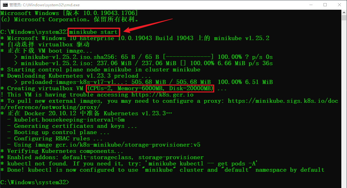数据执行保护可用: 是管理员身份运行运行CMD命令符窗口minikube start
