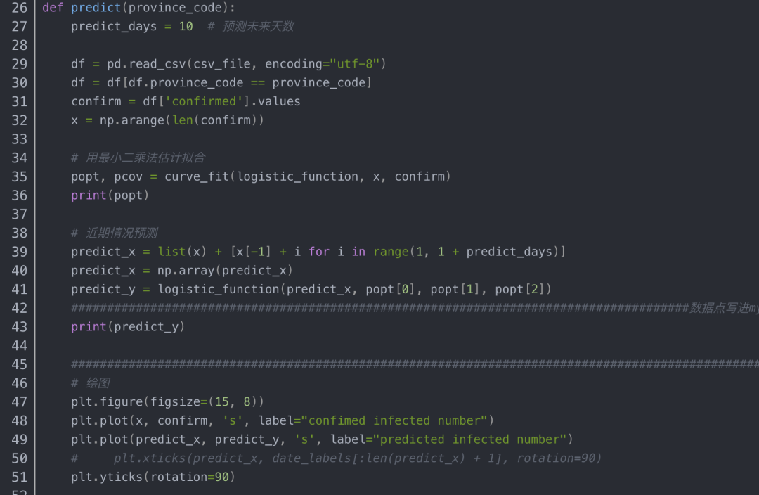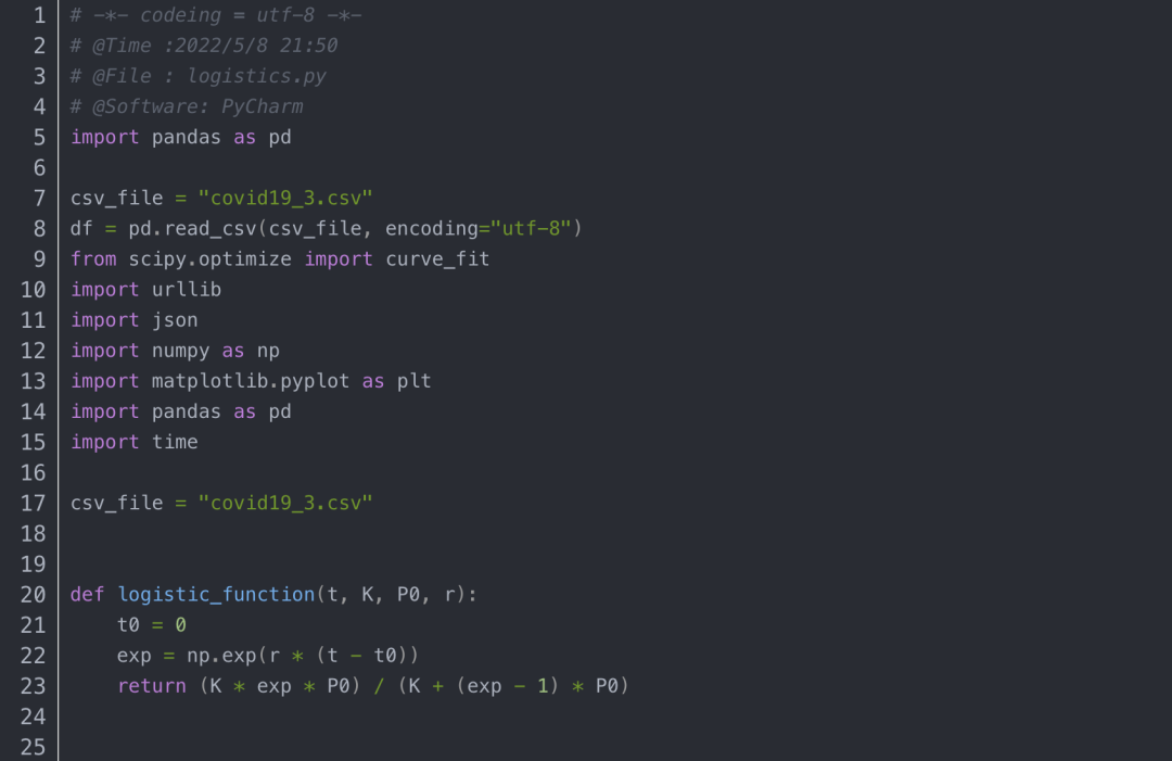 在了解模型特点后,假设外部因素干预事件发展,就会导致数据的突然增多或减少,会影响模型的预测精度。因此,logistic增长模型只是对疾病进行预估,并不能准确判断,也并不是最佳模型。当然可以通过模型优化,来提高预测精度,有的文献提出可以根据华罗庚提出的0.618选优法,对得到的模型进行优化(计算该模型是否能得到预测值和测量值最小残差平方和)。这里我们就不再展开,可以后期进行探讨学习。