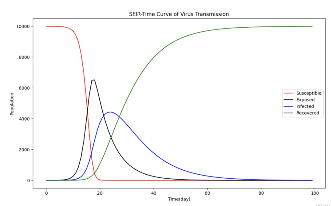 S类:表示易感者 (Susceptible),指未得病者,但缺乏免疫能力,与感染者接触后容易受到感染;E类:表示暴露者 (Exposed),指接触过感染者,但暂无能力传染给其他人的人,对潜伏期长的传染病适用;I类:表示感病者 (Infectious),指染上传染病的人,可以传播给 S 类成员,将其变为 E 类或 I 类成员;R类:表示康复者 (Recovered),指被隔离或因病愈而具有免疫力的人。如免疫期有限,R类成员可以重新变为 S 类。