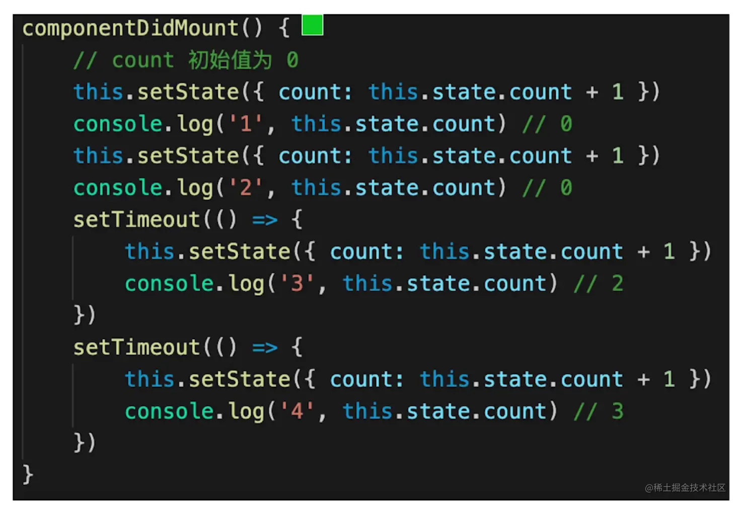console.log(this.state.count) // 3