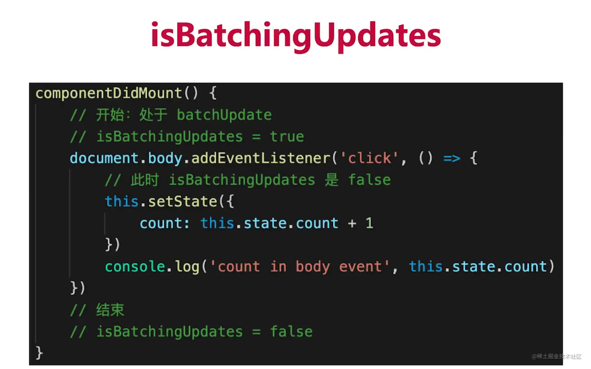 // console.log(this.state.count) // 报错,this 指向问题