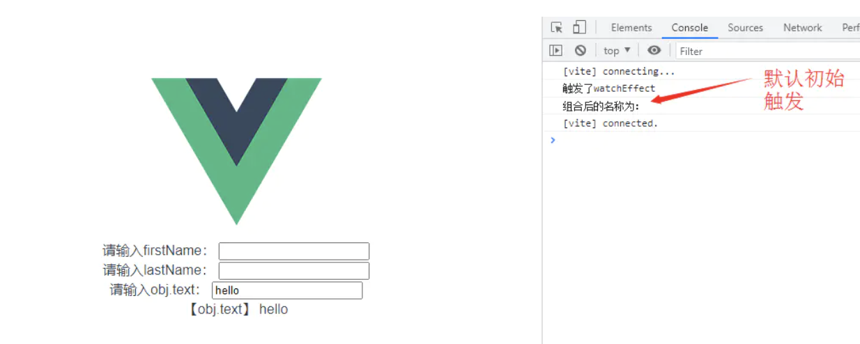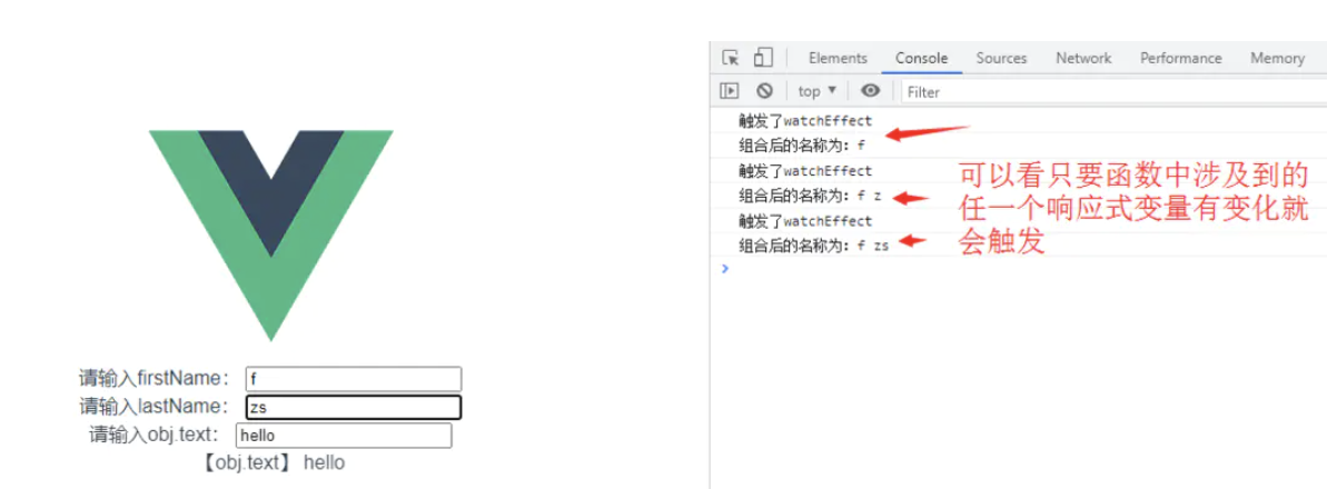 // 这里我们不使用firstName.value/lastName.value ,相当于是监控整个ref,对应第四点上面的结论