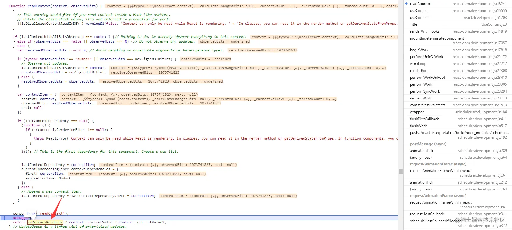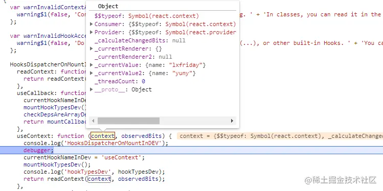 }在上面 useContext 经过 readContext 返回了 context 的值,readContext 在上面有源码介绍。