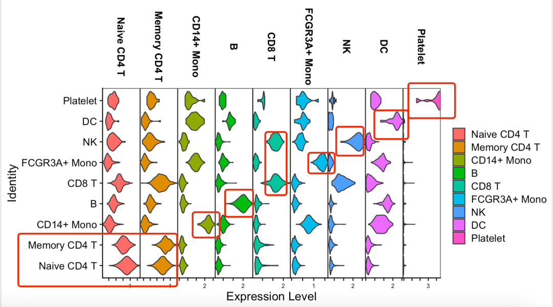 如下所示,两个CD4的T细胞比较类似,两个单核细胞也是如此,CD8和NK也是如此: