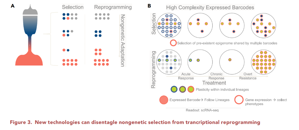另一方面,在环境突然剧烈变化时,表观遗传学也快速转变,转录可塑性和表观遗传记忆在适应进化的过程中发挥作用,以应对肿瘤微环境(治疗和转移)的快速破坏性变化。