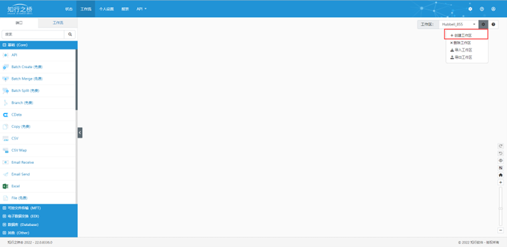 ①先点击右上角的工作区齿轮图标,选择创建工作区,命名为Hubbell_855。
