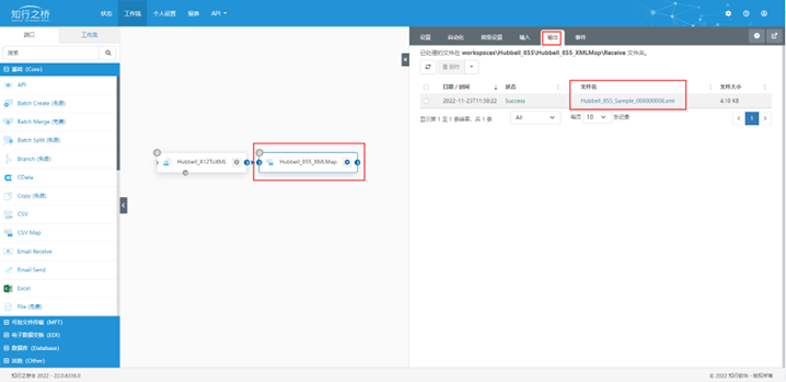 ④点开Hubbell_855_XMLMap端口,点击上方 输出 ,点击 Hubbell_855_Sample_000000008.xml即可下载文件,看到转换后的结果。