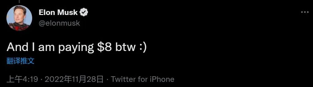 在随后进一步的解释中,马斯克表示,因为虚假账户等问题导致一系列延误之后,推特将于周五重新启动其付费验证服务。Twitter Verified 是他试图区分不同类别的用户并增加收入的尝试。