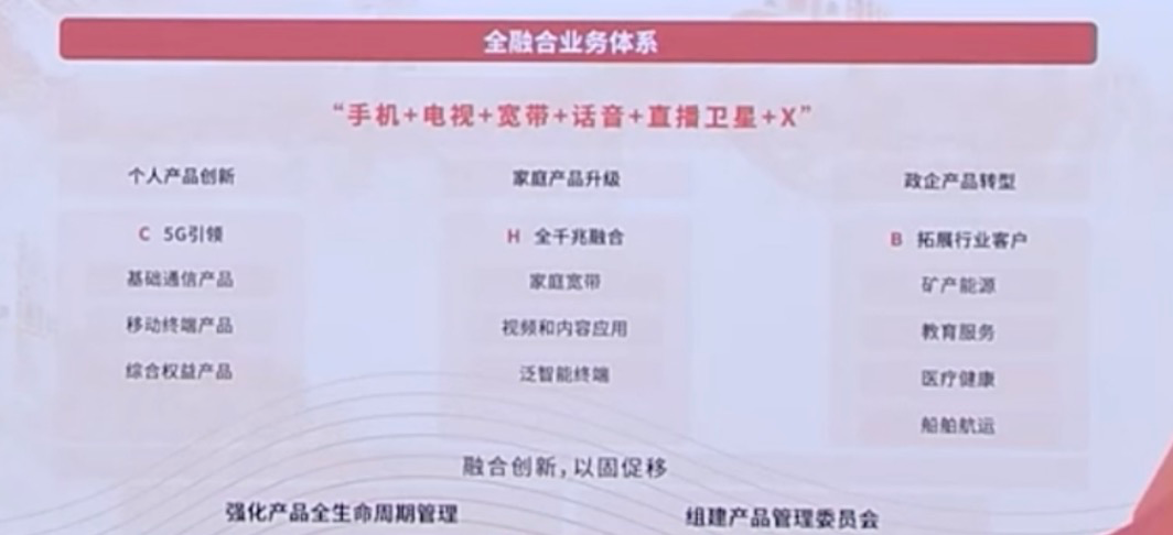 今年早些时候,中国广电对外公布了其“手机+电视+宽带+语音+直播卫星+X”的全融合业务体系,这套体系基本上把其通信和内容的融合方向甚至是路径都展现了出来。而这一方向与中国移动不谋而合——目前,在内容业务上,中国移动是运营商中最卖力也是做得最好的。