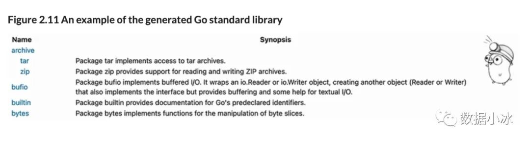 包的第一行注释应该简洁,因为它将出现在包的文档中。如下图所示,每个包名后的简洁说明来自包中文档的第一行说明。