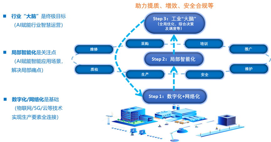 目前发展阶段主要是在数字化、网络化和局部智能化这两个层面,行业“大脑”是未来的目标。