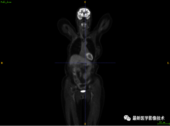 第一张是低剂量10的PET图像,第二张是full剂量PET图像,第三张是网络重建的PET图像。