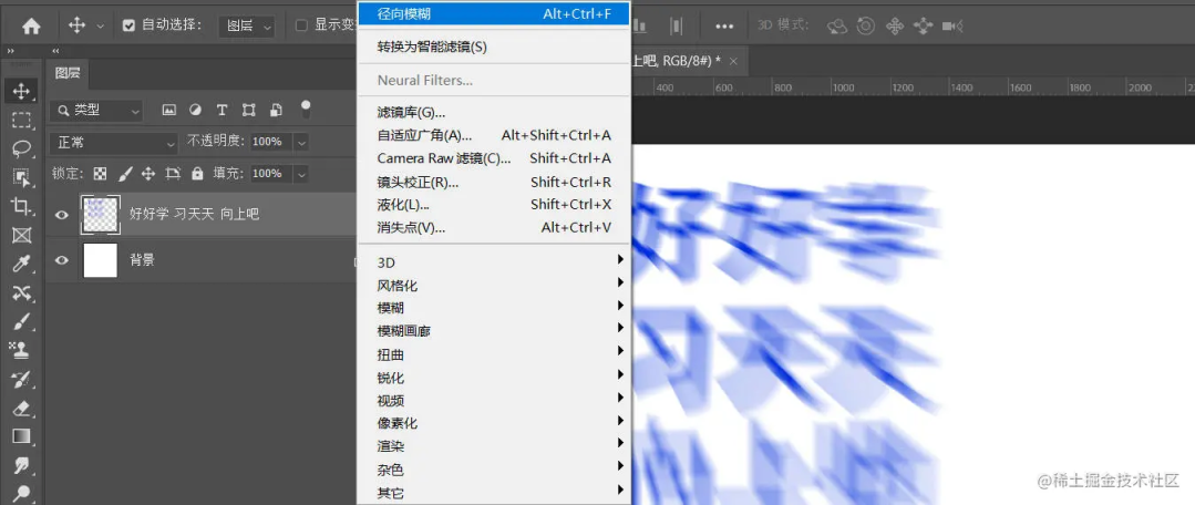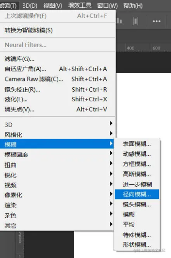 接下来我们在滤镜菜单下找到模糊找到径向模糊