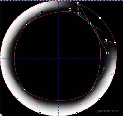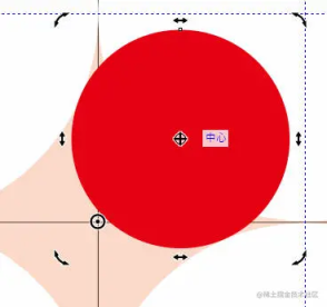 在这八个面积一致的空间中,绘制四个面积一样的,并且和大圆相切的圆,如图所示,这样我们就在大圆和小圆的中间创造出来了一个,不规则的图形