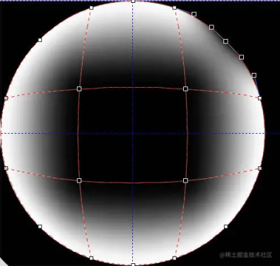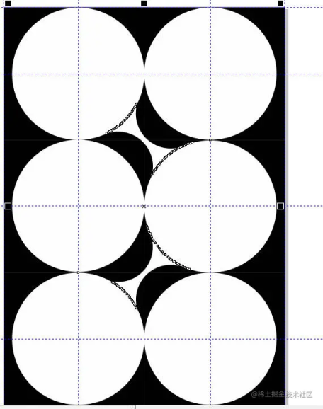 每一个圆都有一个字体的中心点,我们可以把参考线直接移到中心点上,横向三条,纵向两条,不然我们就把一张 a4 纸平分成了,24 个小空间,也不能说是平分吧,至少有八个空间,面积是一致的