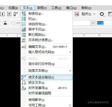 3.钢笔路径上的文字应用我们用钢笔换一条曲线,点击文字工具,在钢笔上,我们发现和 PS 不同,他并没有反应,如果是这样的情况,你就需要在文本菜单下点击使文本适合路径选项,然后再点击文字工具,到那条路径上就可以在上面输入文字了,这样我们的一个案例就做好了