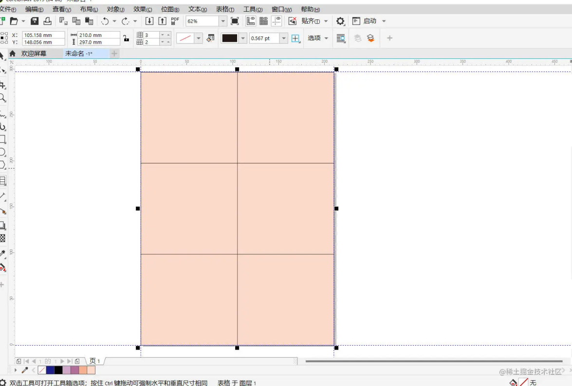 长按文字工具在它的附属工具中会有表格工具其他版本会在其他地方,点击表格工具从我们新建 s 纸张的对角线,从上下下下画出一个表格