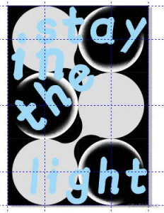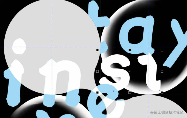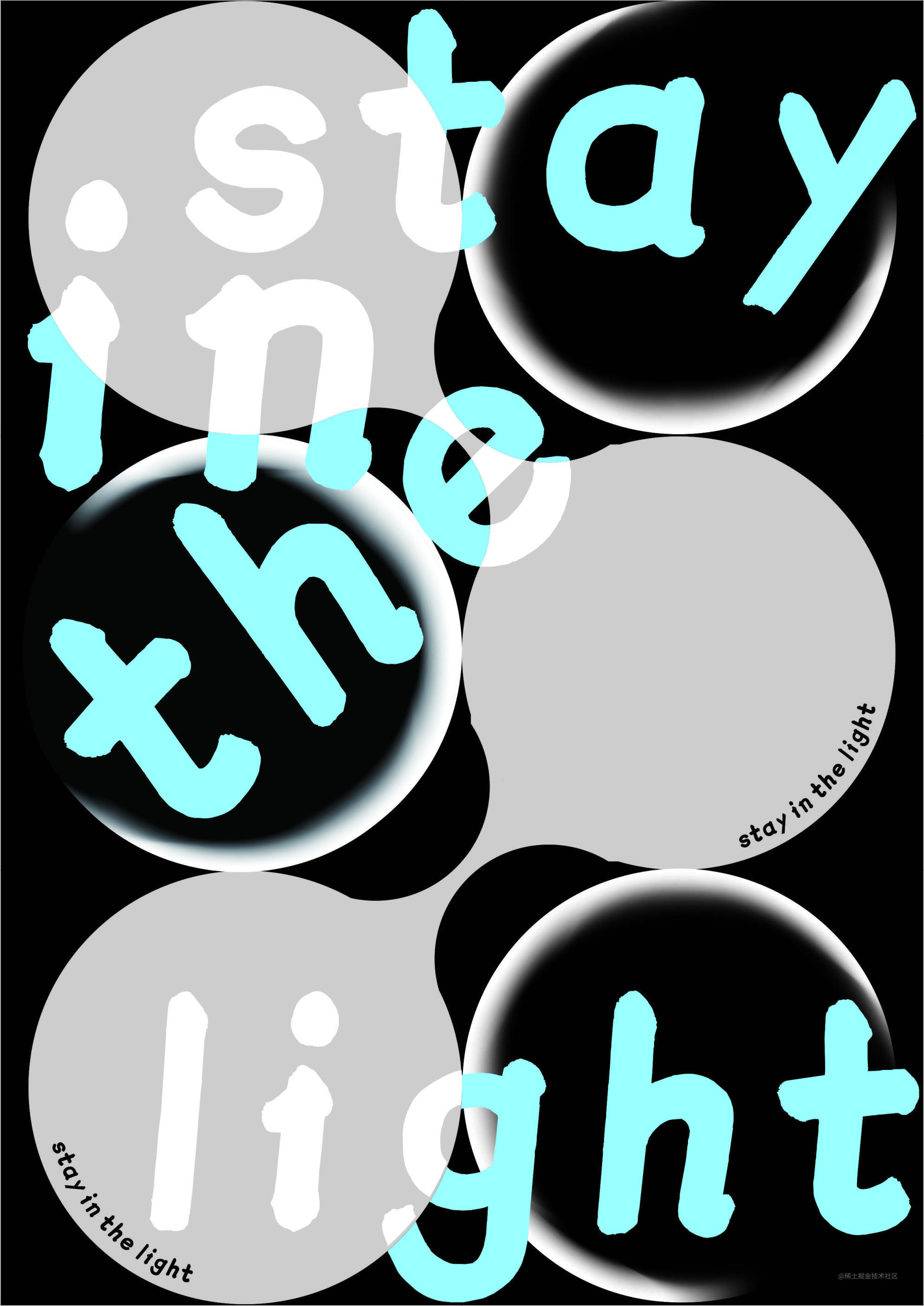 1.相交工具应用输入文案“stay in the light”选中之前焊接过的图层,把整体调整为 20%的灰,选中它和选中 stay 单词,点击相交,它就会自动新建一个就是复制一个,他们相交的部分,你直接在那个相交的部分,填充白色,并且鼠标右击顺序,可以调整到图像前面,或到图像后,其他的字母都是这么做的,但是,你要是把你刚才填充的白色区域挪开,你会发现下面单词原有的蓝色还在