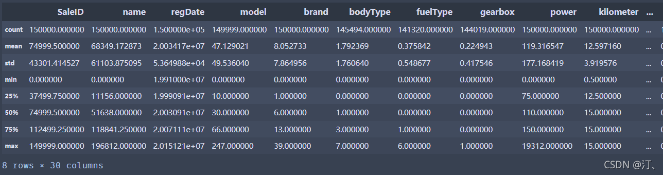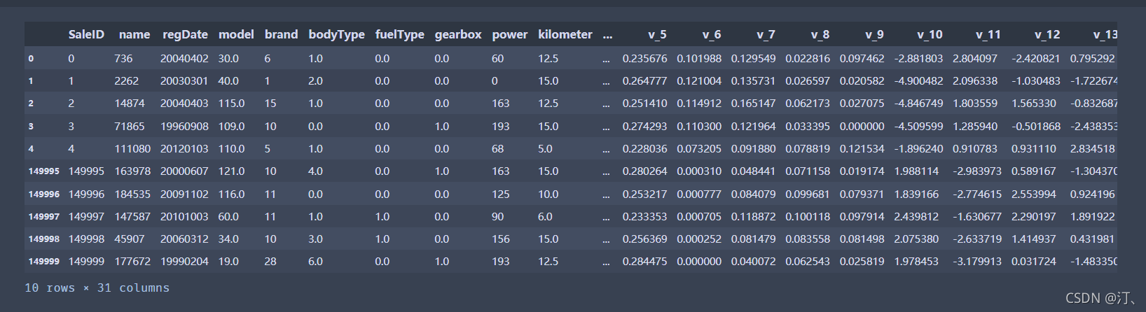 print('TestA data shape:',Test_data.shape)Train data shape: (150000, 31)