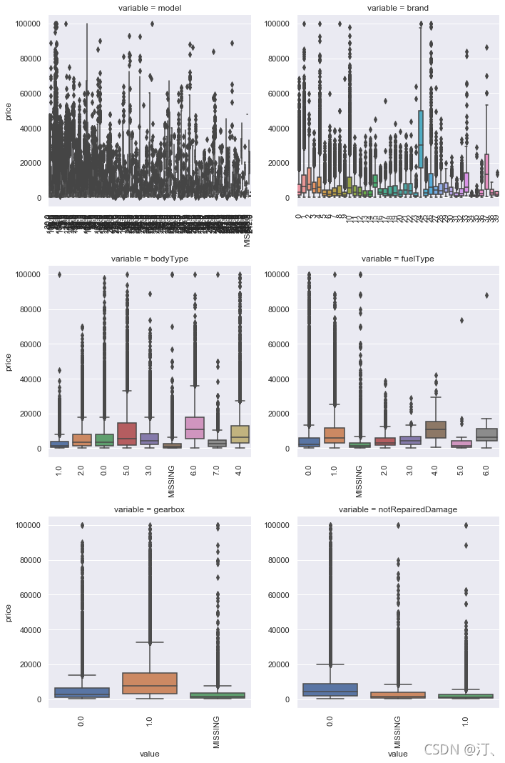 比赛要求参赛选手根据给定的数据集,建立模型,二手汽车的交易价格。来自 Ebay Kleinanzeigen 报废的二手车,数量超过 370,000,包含 20 列变量信息,为了保证 比赛的公平性,将会从中抽取 10 万条作为训练集,5 万条作为测试集 A,5 万条作为测试集 B。同时会对名称、车辆类型、变速箱、model、燃油类型、品牌、公里数、价格等信息进行脱敏,处理异常值。