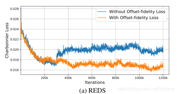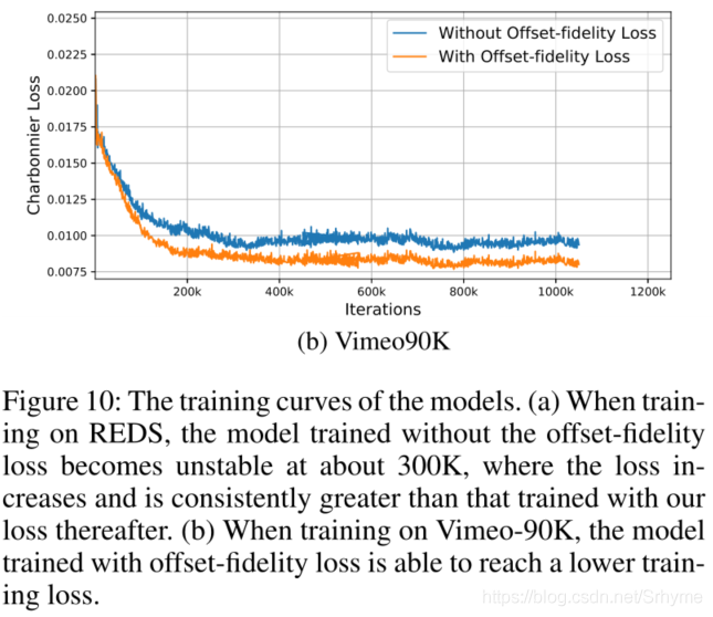 其中,L为训练损失。λ和t是控制偏移多样性的超参数。变形对齐的训练是不稳定的。不稳定的训练过程会导致偏移量的溢出。为了避免偏移溢出,本文提出了偏移精度损失来约束学习的偏移量,使其不会偏离光流太多。另外,由于偏移多样性在视频SR中的重要性,我们允许网络学习最佳偏移量,只要它们与光流的差不超过某个阈值。在EDVR上进行了实验,额外的改善高达1.73dB。