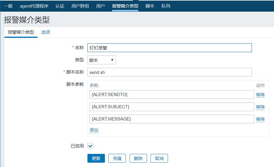 [root@localhost ~]# systemctl restart zabbix-server6.点击图形界面,选择管理->报警媒介->创建报警媒介.