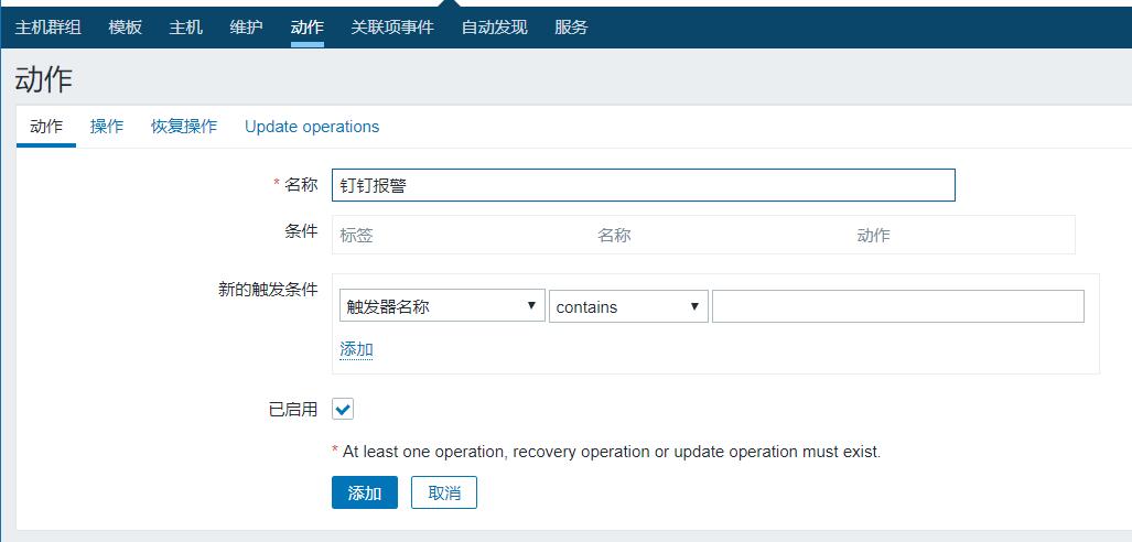 9.当我们配置完成一个故障报警后,下面就继续配置一个恢复后的提示.