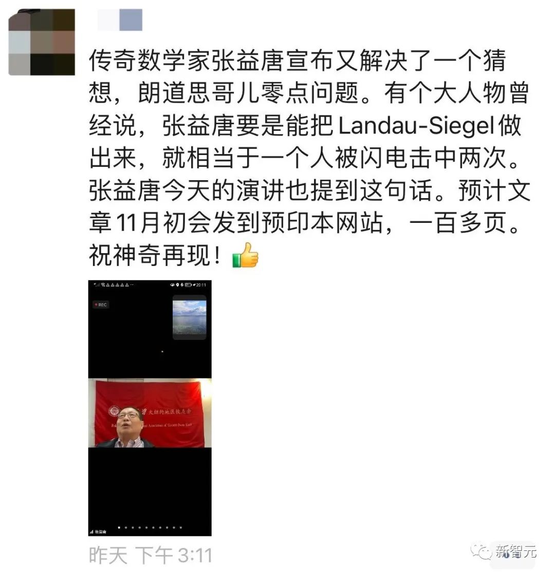 据称,张益唐在参加10月15日北京大学校友Zoom线上会议时,在口头上承认了这一点。