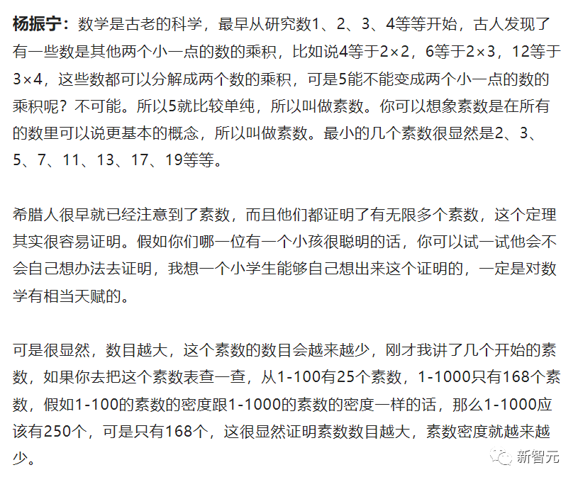 对于以上解释,张益唐本人表示:「杨振宁教授的介绍既通俗又清楚,如果让我自己讲的话,我肯定讲不了那么好。」