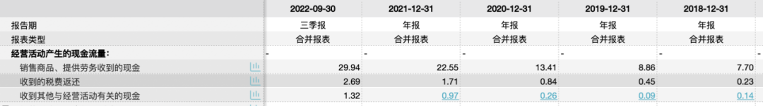 2021年其收到退税金额1.71亿元,同比增长104%,2022年前三季度,其退税金额较上年末增长0.98亿元至2.69亿元。