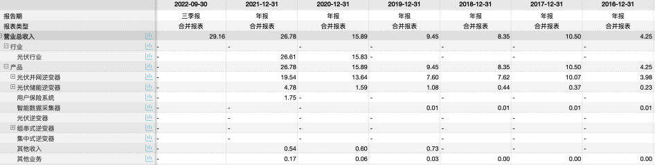 另外,从其2021年营收构成来看,全年26.78亿元营收中,光伏并网逆变器贡献营收19.54亿元,光伏储能逆变器则只有4.78亿元,此外为其他业务。
