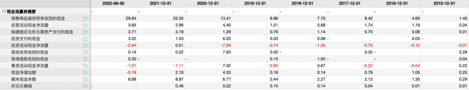 此外,在现金流表现方面,尽管经营性现金流净额一直保持正向流入,但综合投资及融资性现金流情况,其现金流净增加额却存在较大波动,而且2022年前三季度,其现金流不增反减,净流出0.19亿元。