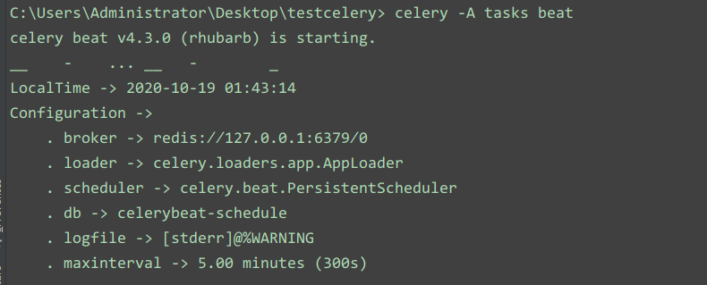 )定时任务需要启动一个监控服务beat来监听心跳,还是进入tasks.py文件所在目录,执行命令:
