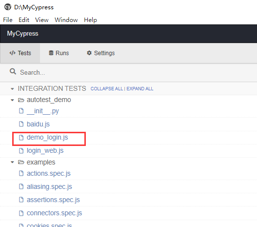 - package.json //这个要自己创建而我们脚本是新建在此目录下:cypress安装路径\node_modules\.bin\cypress\integration ,创建一个 js 文件