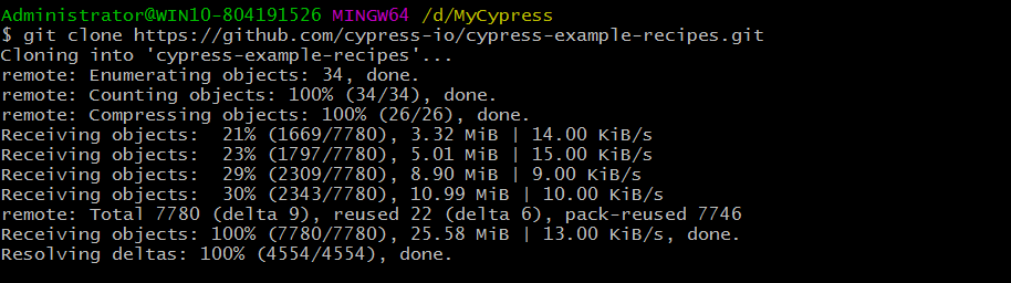 git clone https://github.com/cypress-io/cypress-example-recipes.git