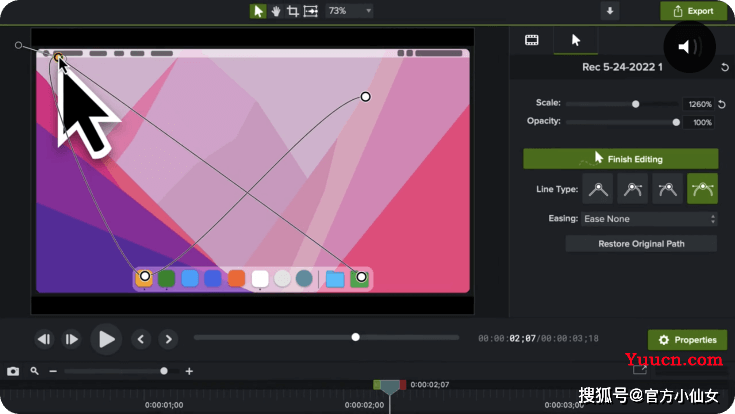 使用Camtasia 2023,我们能随心所欲的指挥光标,为任何对象添加动画光标,还能自动将系统光标替换为高质量的矢量光标,即使放大10倍也不会模糊,更加清晰地吸引观看者的注意力。另外新增的光标路径,可以在视频中画出你想要的光标移动路线,通过拖动路线的节点定位到你需要停顿的位置,就能做到无中生有的光标持续移动效果。再也不用担心演示操作还要同时解说导致的手忙脚乱了,就像会了魔术一样!