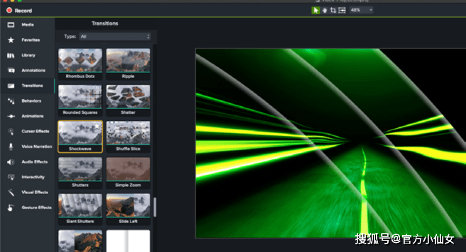 在Camtasia2023中,软件为用户新增了75+个视频过渡选择,在已有视频过渡风格的基础上,给予用户更多创作机会。