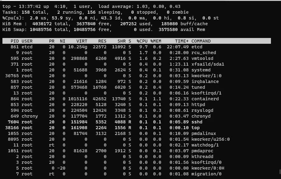 排序 根据默认值,top会按照进程使用的CPU时间来周期性地刷新内容。但是,您也可以按照内存使用率或执行时间来进行排序: