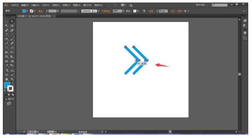 6、复制一个图形,向左移动,然后使用直接选择工具选中所有的图形,调整其中的一个锚点处的圆角, 将直角转为了圆角 ,如图
