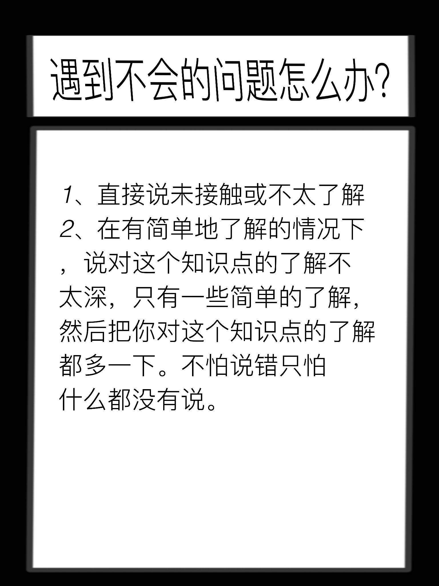 我在面试中也有一个,防止紧张的一个小技巧。就是我会假装面试官是一个雕塑,非常精美的一个雕塑,我去观察他的眼睛,观察他的五官,或者是他那稀稀落落的头发。这样子的话,既不会让我太过于紧张,也不会出现我太过于紧张,不直视面试官,发生误会。
