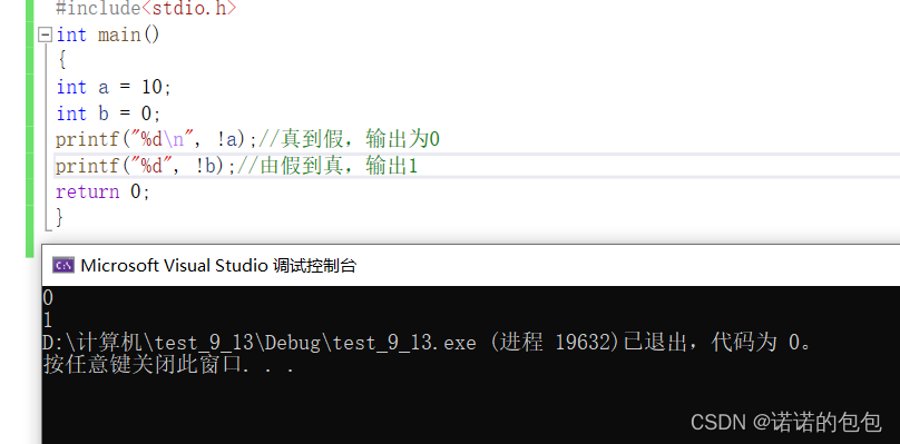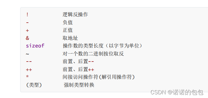 所谓单目操作符,就是只接受一个操作数的操作符,它旁边只能有一个变量,看了下面的介绍就知道啦: !:所谓逻辑反操作,就是把真变为假,把假变为真 在C语言里,0就代表假,非零就代表真,通常都是这么规定的,由真到假也就是由非零到0,由假到真即由0到1。 话不多说,上图: