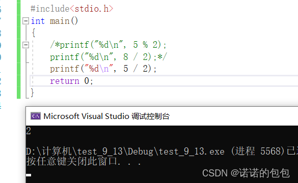 那么这里得到的结果就是1,也就是输出余数。 这里要注意一点! 就是我们计算8/2的值,毫无疑问,得到的结果肯定是4,但如果计算5/2的值呢?得到的结果应该是多少? 看这里: