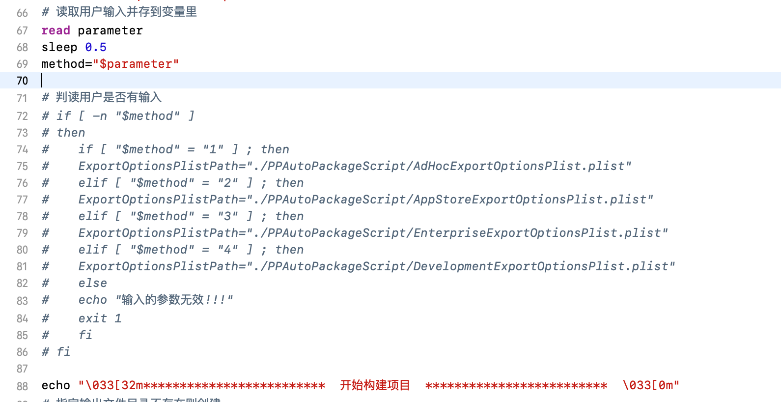 另外需要注释掉提示输入打包的类型(我们执行脚本的时候直接指定 类型):