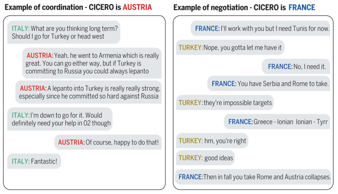 它可以通过和其他玩家讨论长期战略来促成联盟建立,也可以提出互惠互利的措施来实现和对手的共赢,甚至改变其他玩家的想法。