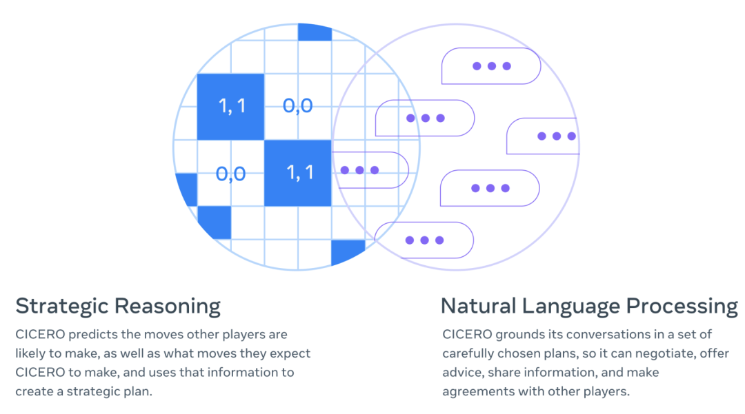Cicero,是Meta AI提出的能够在『强权外交』游戏中超越人类的AI模型。它凭借自己"忽悠"人的能力(模拟谈判与合作),成为游戏里的顶级高手。